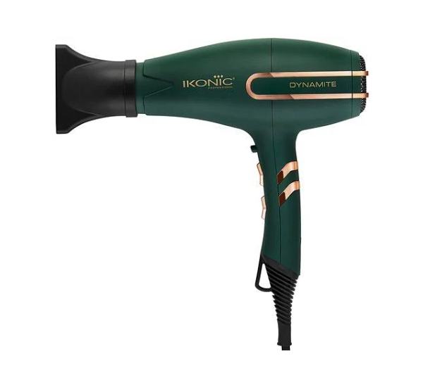 The IKONIC Dynamite Hair Dryer delivers powerful 2400–2800 W airflow with a high-speed motor (25,000 RPM), 3 heat/2 speed settings, Cool Shot, and two concentrator nozzles for salon-style results. Enjoy quiet, fast drying and user-friendly features like overheat protection, a removable filter, and a 3 m cord. Ideal for at-home and professional use, the dryer includes a 1-year warranty.